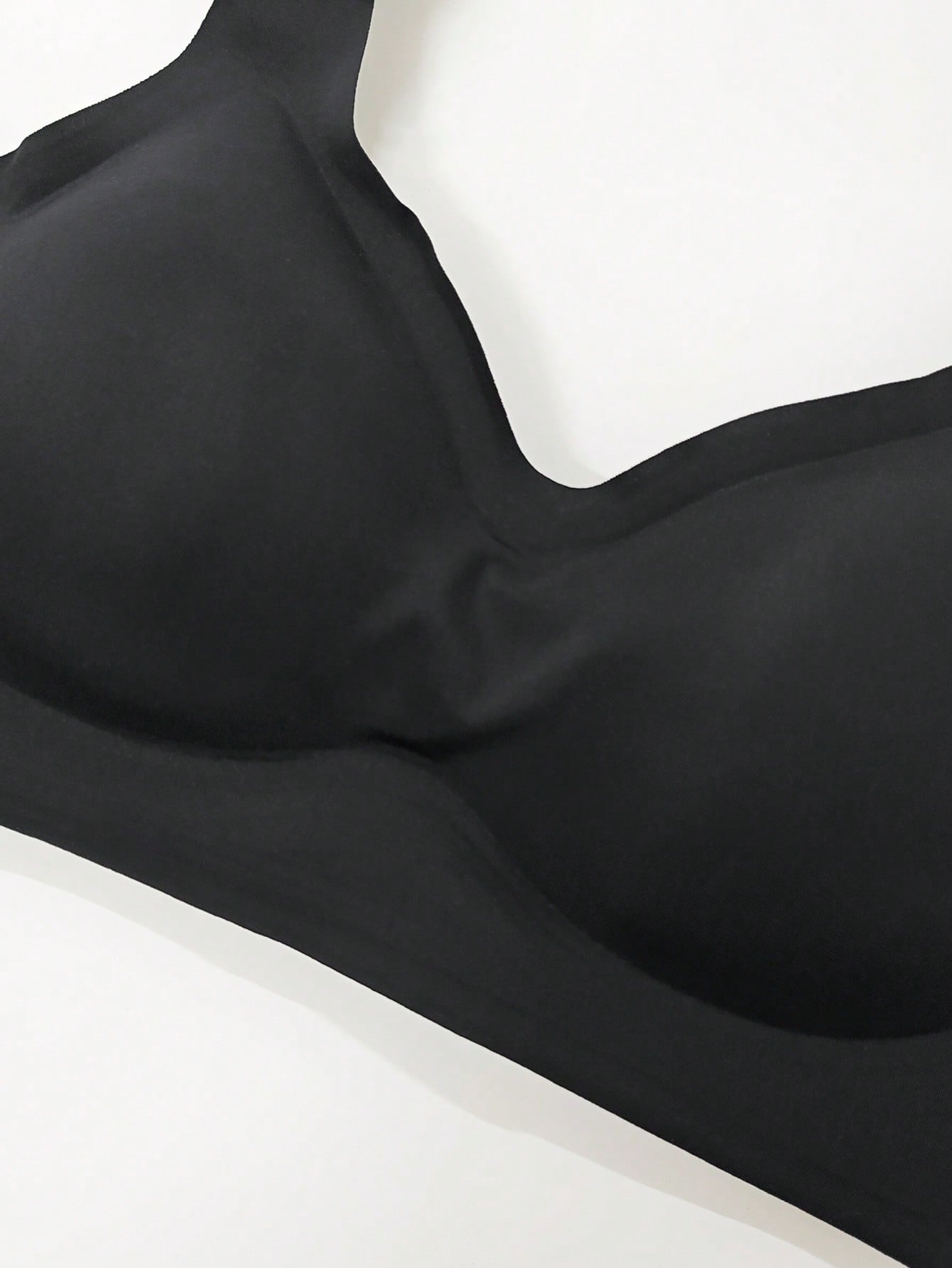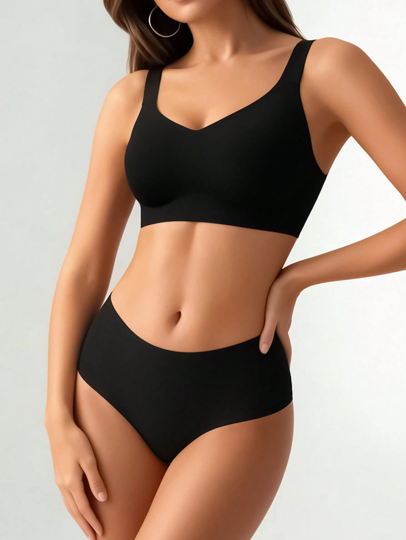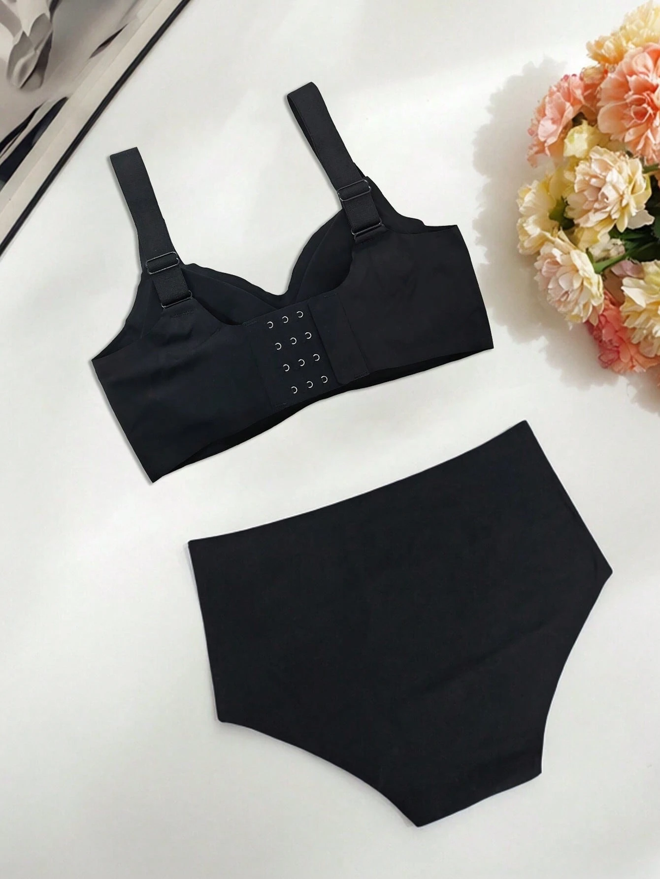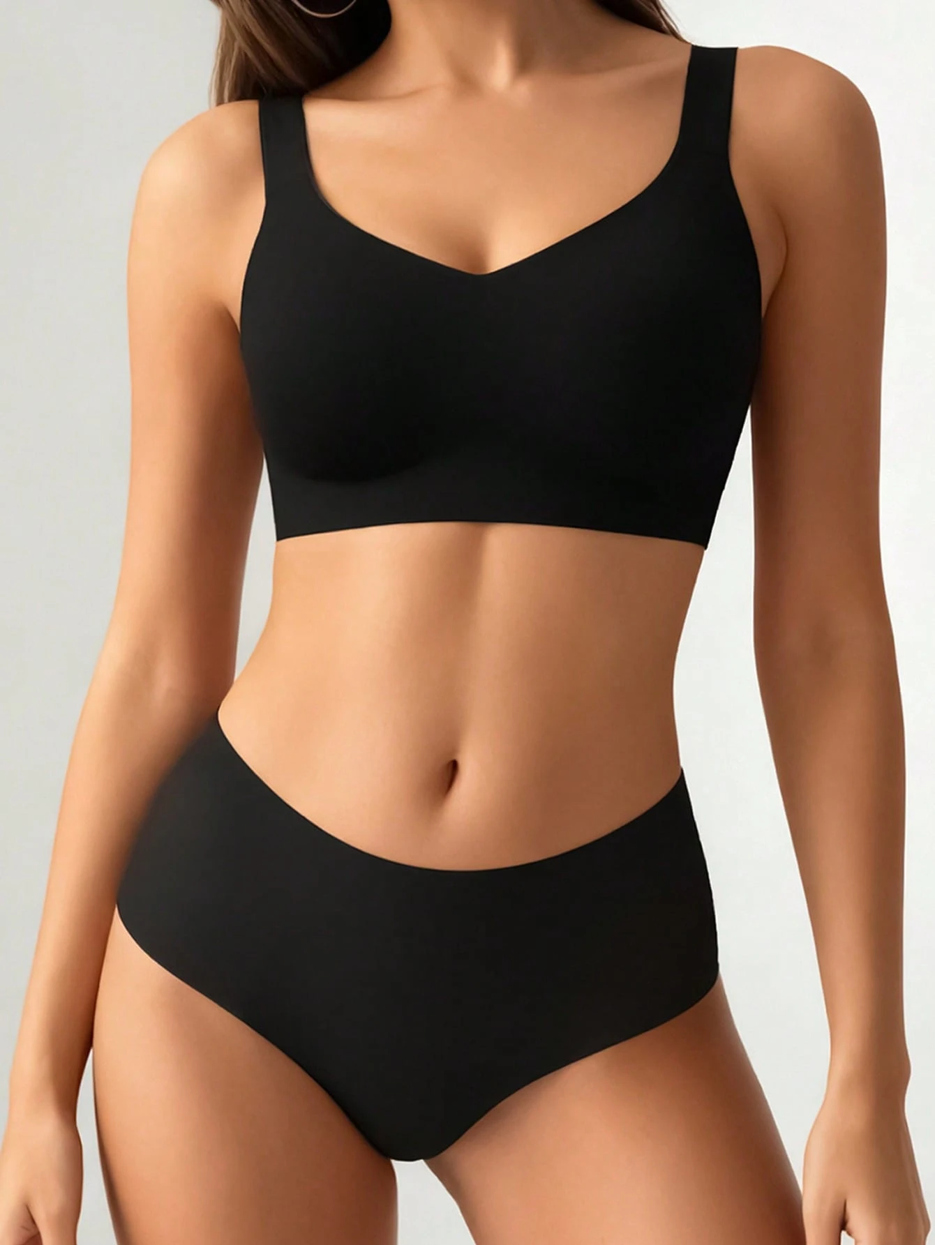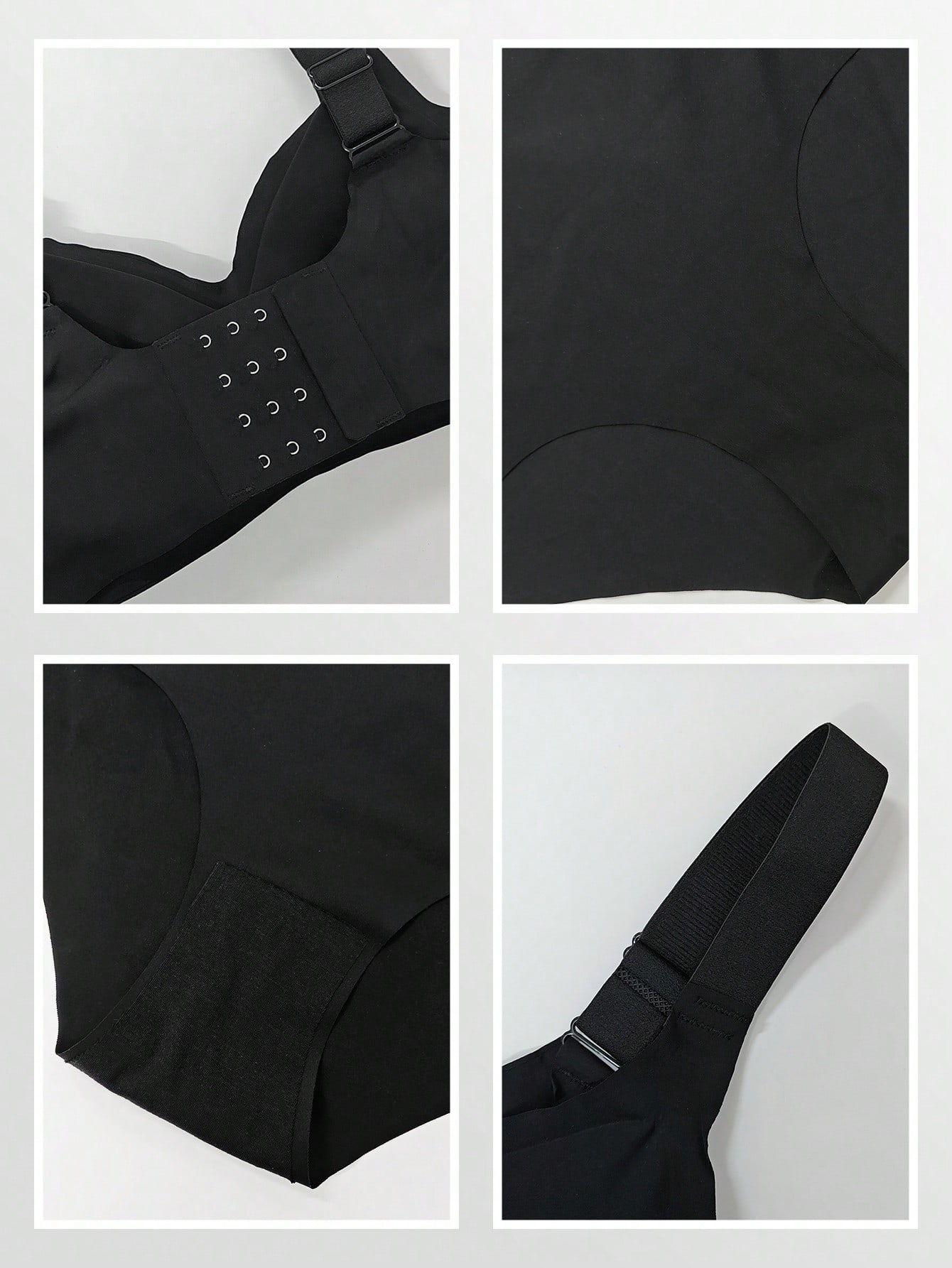2pcs Seamless Lingerie Set, Solid Color Backless Thin Adjustable Strap Bra And Fashion Panty Combo