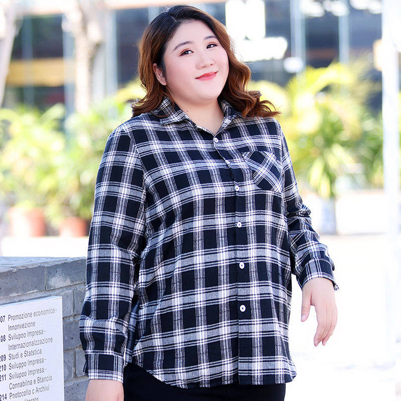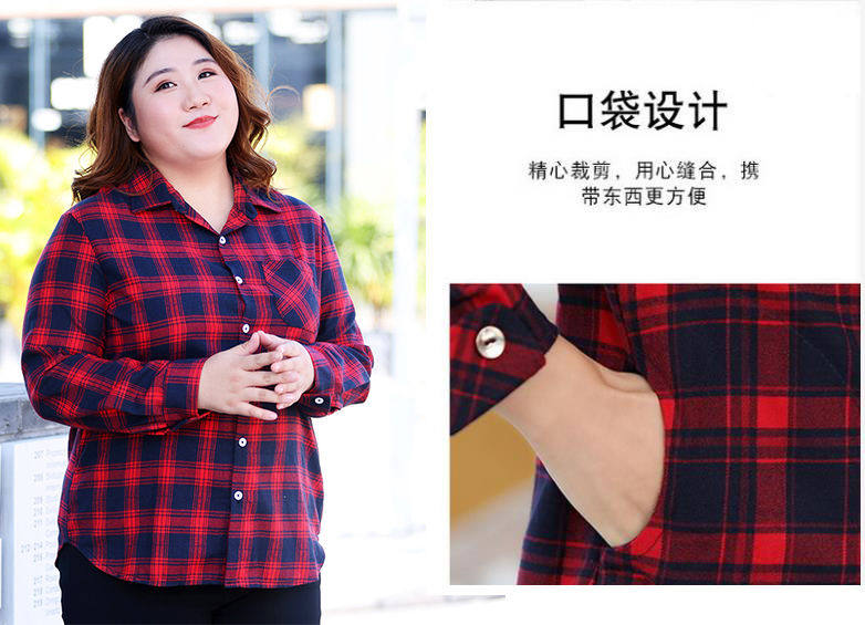 300 pounds plaid shirt autumn and winter coat women’s long-sleeved middle-aged and elderly mother’s wear loose large size big pocket top