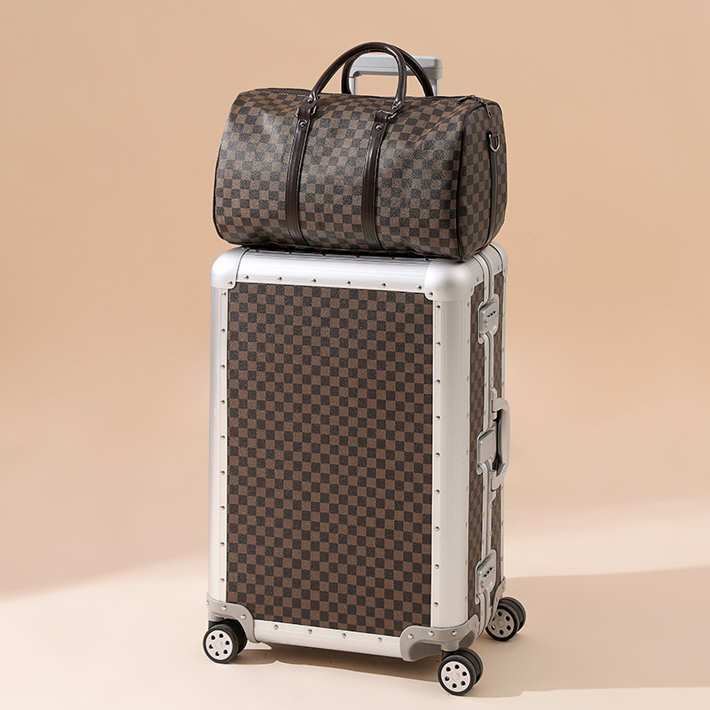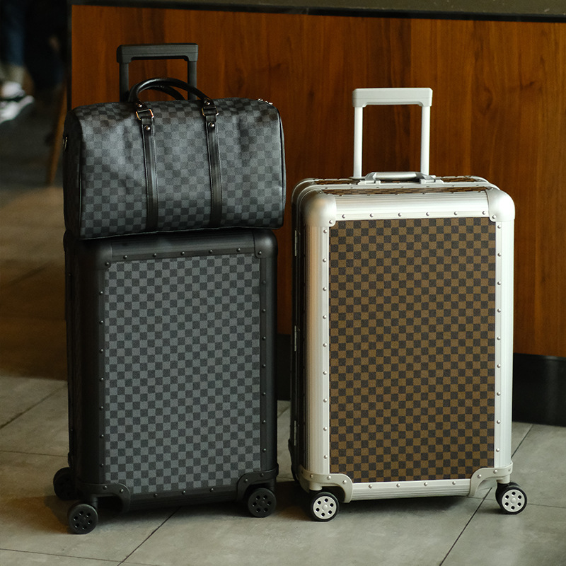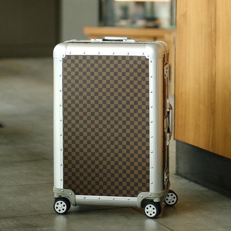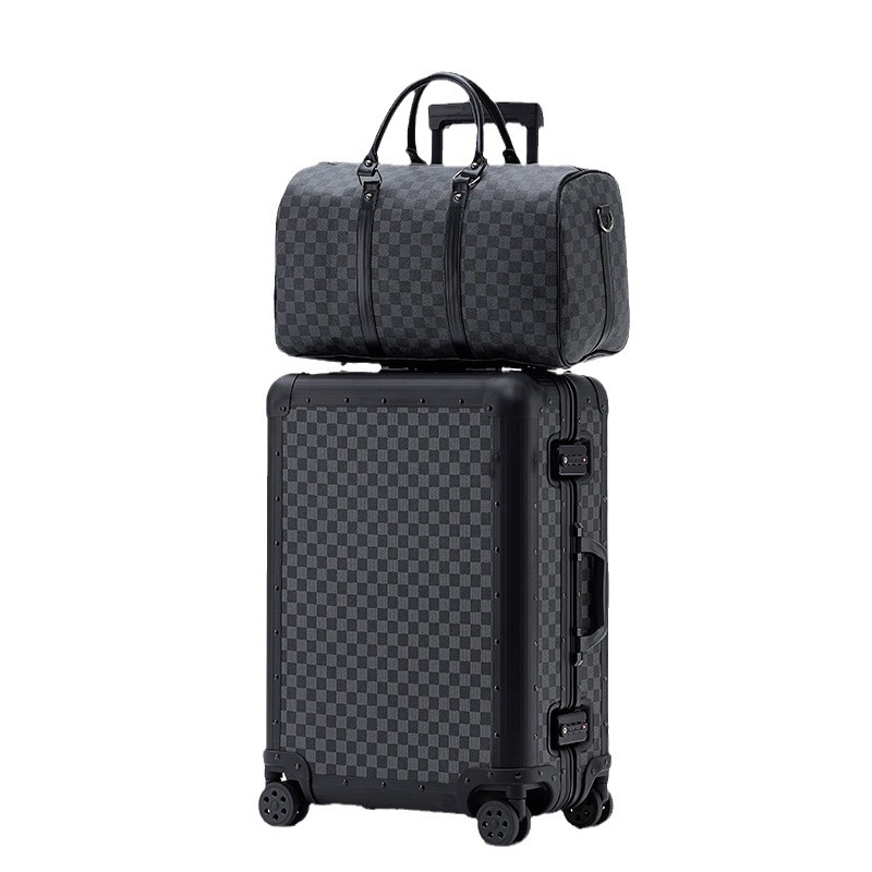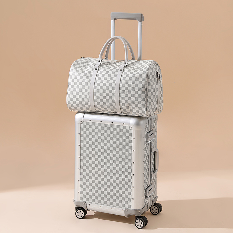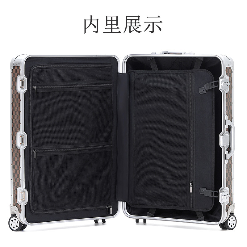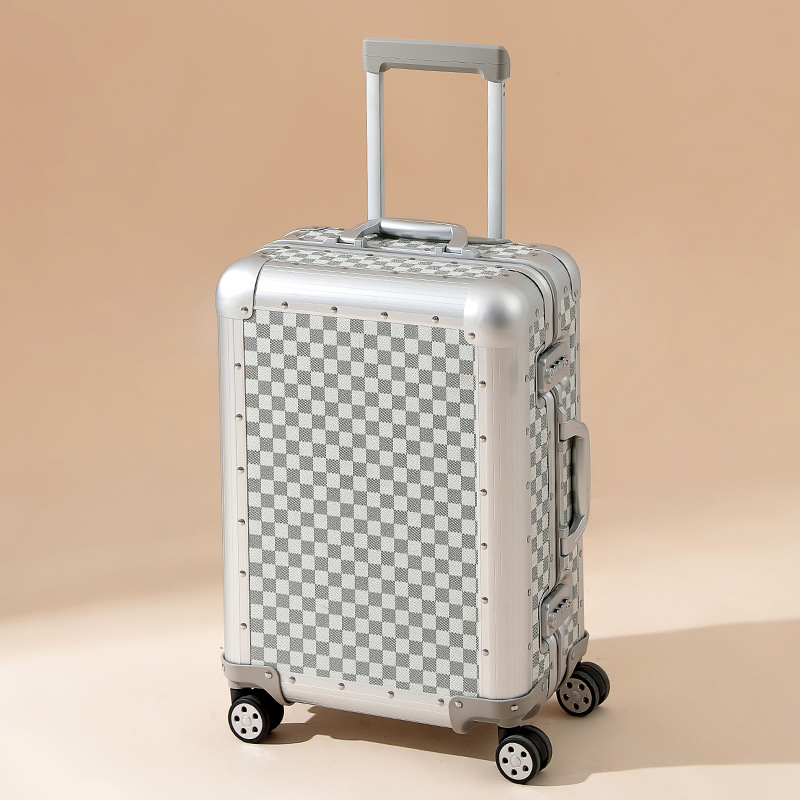 All-aluminum magnesium alloy suitcase metal trolley case 20-inch boarding suitcase suitcase checkerboard password suitcase