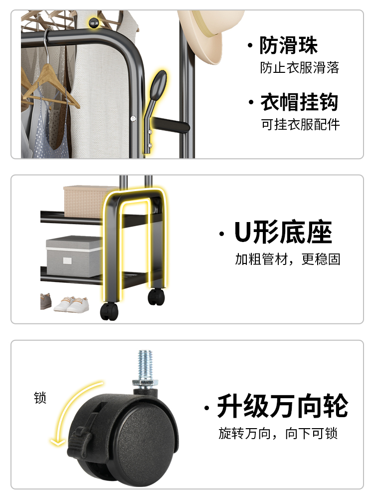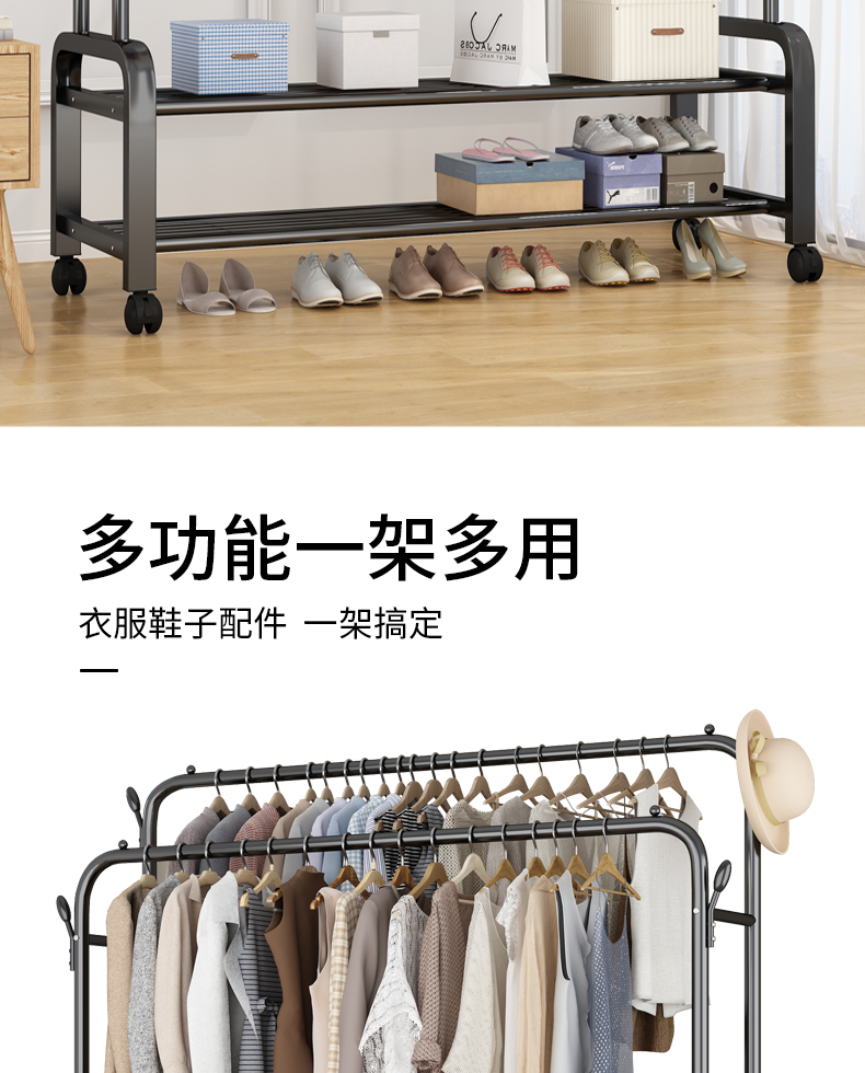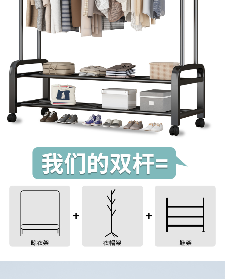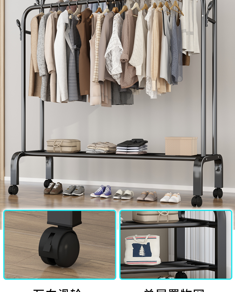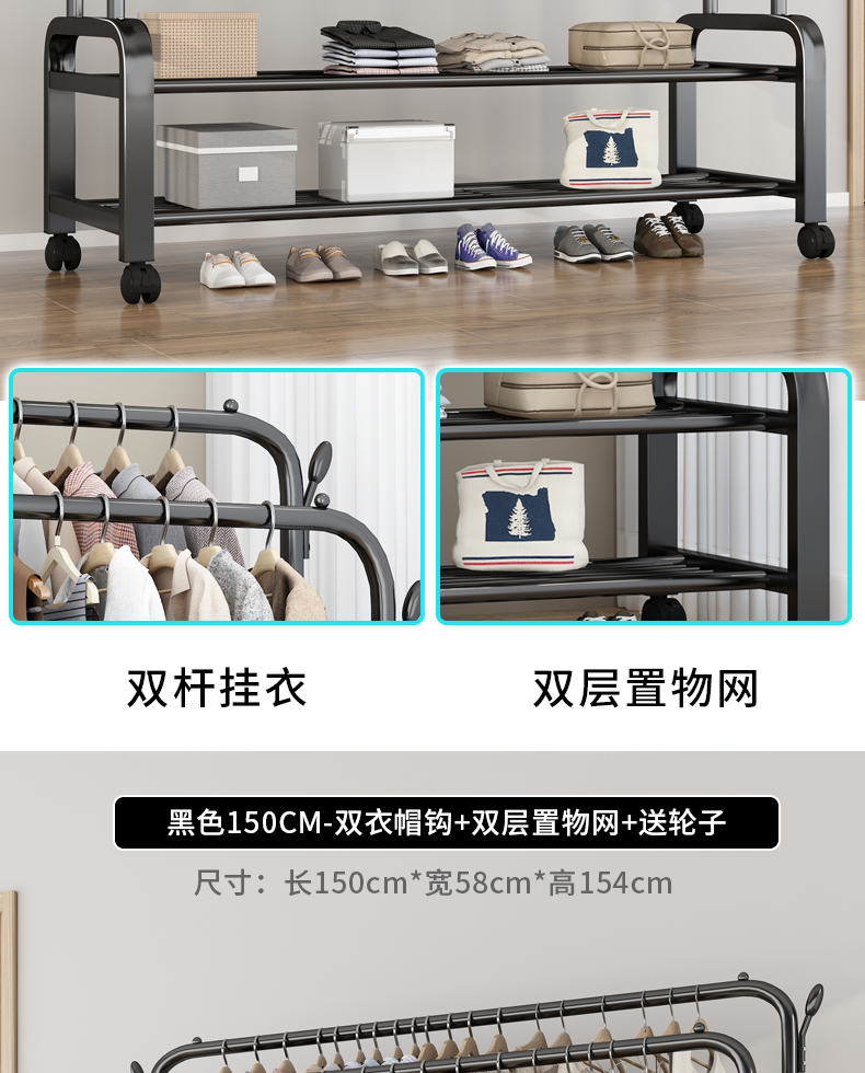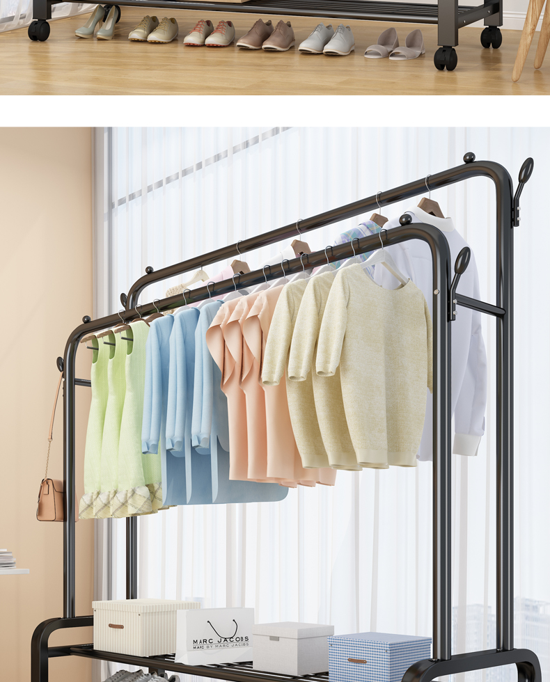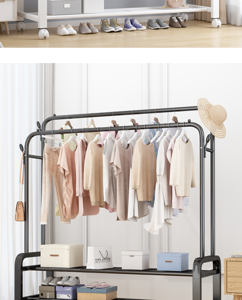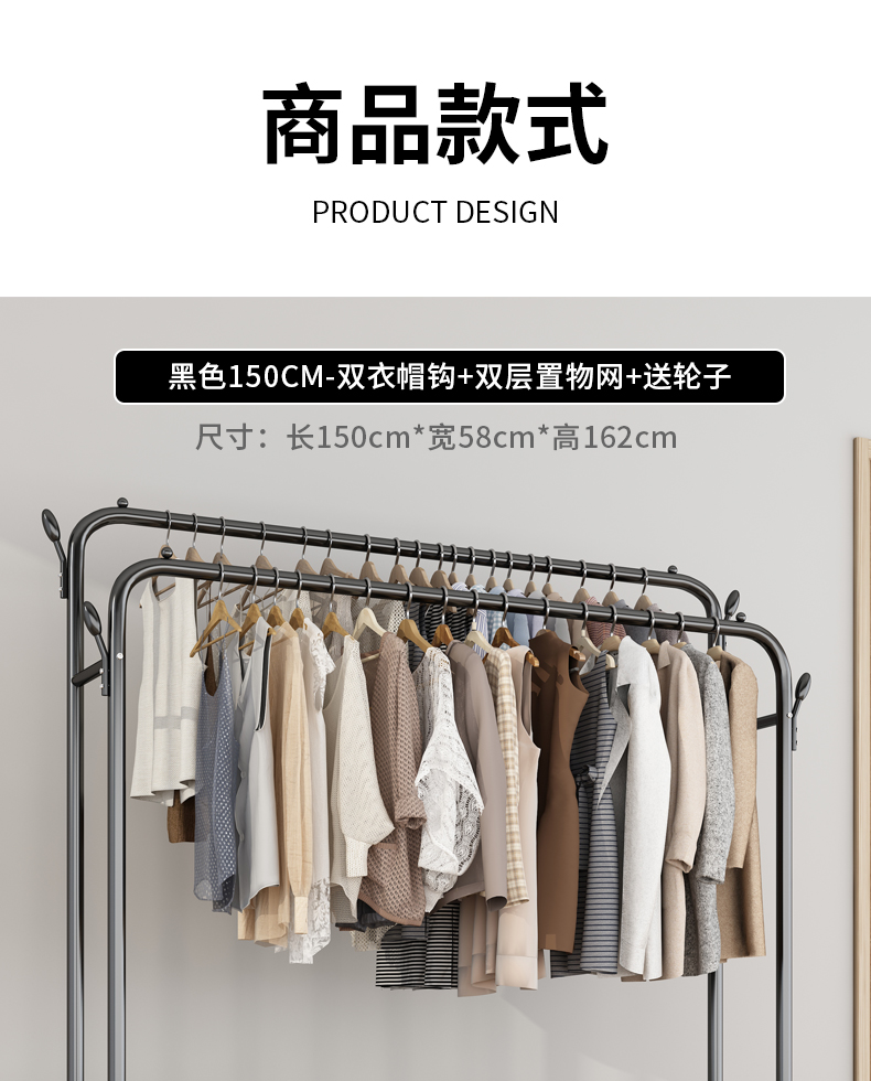 - Color classification: ?Four seasons general model, spot fast delivery, fast delivery, first-class single rod-125cm-no hook-black simple 125-single rod-black-7 hooks simple 125-single rod-white-7 hooks? upgrade 105 -Double Rod-Black? Upgrade 105-Double Rod-White? Upgrade 120-Double Rod-Black + Coat Hook + Single Rack? Upgrade 120-Double Rod-White + Coat Hook + Single Rack Upgrade? 130-Double Pole – black + coat hook + single storage net? With wheel upgrade? 130-double pole – white + coat hook + single storage net? With wheel upgrade? 150-double pole – black + coat hook + single storage net? Upgrade with wheels? 150-double pole-white + coat hook + single storage net? Recommended with wheels? 130-double pole-black + coat hook + double storage net? Recommended with wheels? 130-double pole-white + clothing Hat hook + double storage net? Recommended with wheels? 150-double pole-black + coat hook + double storage net? Recommended with wheels? 150-double pole-white + coat hook + double storage net? With wheels? Great value 135-Double pole-black + multi-layer classification storage + coat hook? With wheels? Super value 135-Double pole-white + multi-layer classification storage + coat hook? With wheels? Super value 150-Double pole-black+multiple Layer classification storage + coat hook? With wheels? Super value 150-double pole-white + multi-layer classification storage + coat hook? With wheels