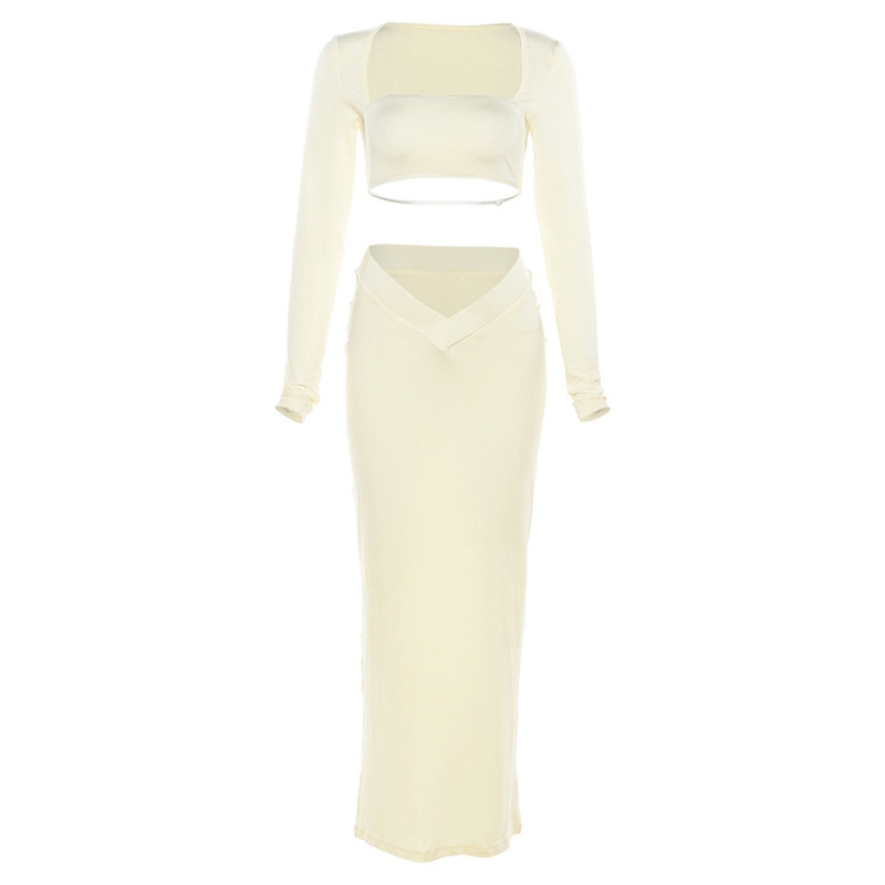 European and American style 2023 summer new women’s fashion square collar navel T-shirt slim fit low waist bag hip skirt suit