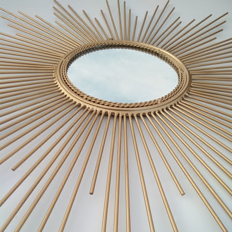 Gold and silver sun-shaped simple TV sofa background wall hanging mirror European style decorative
