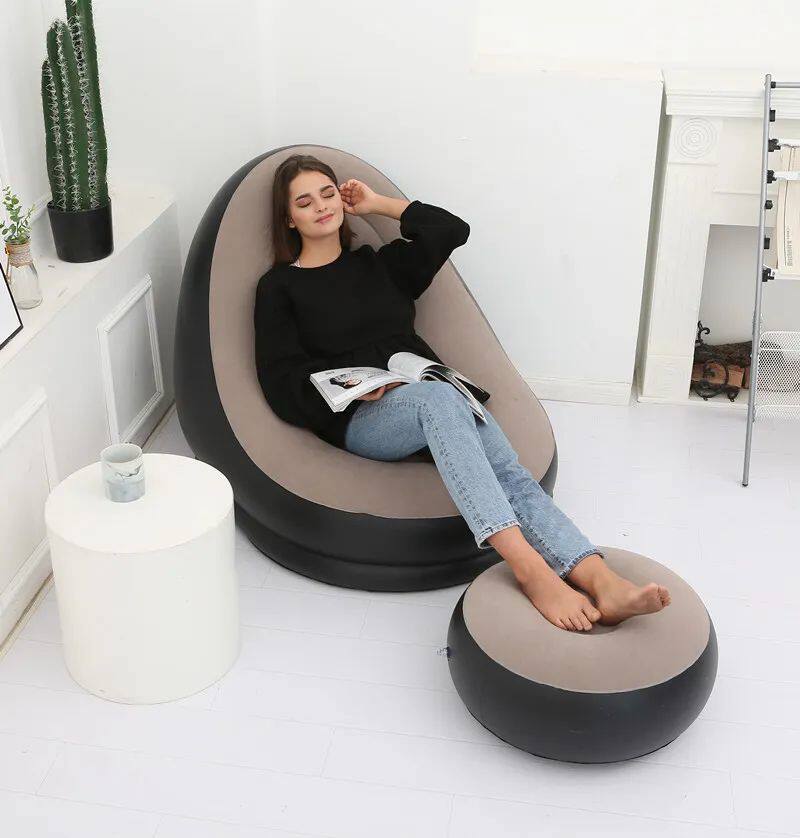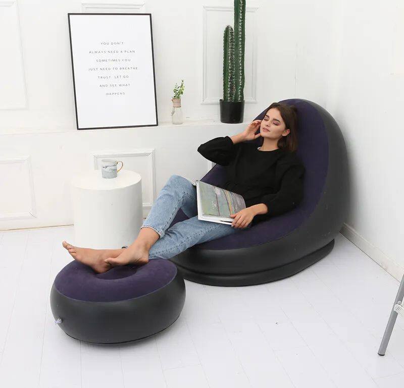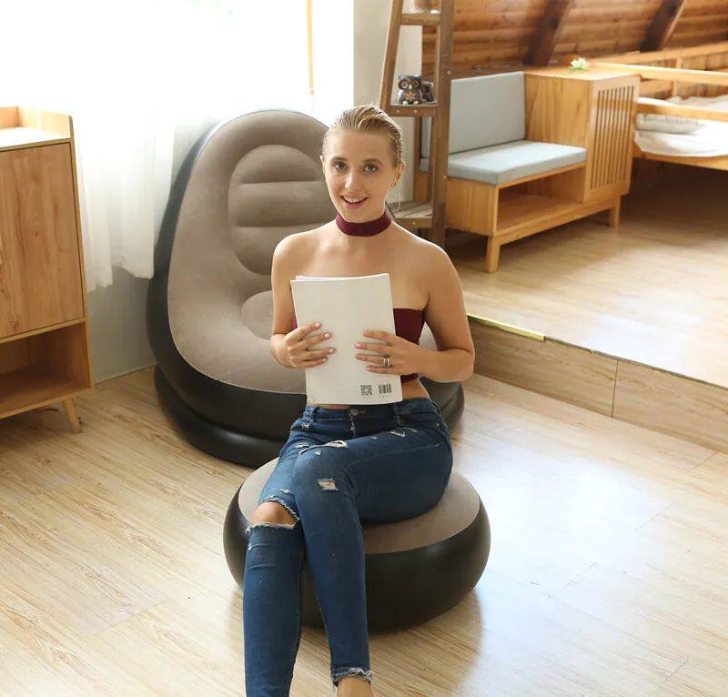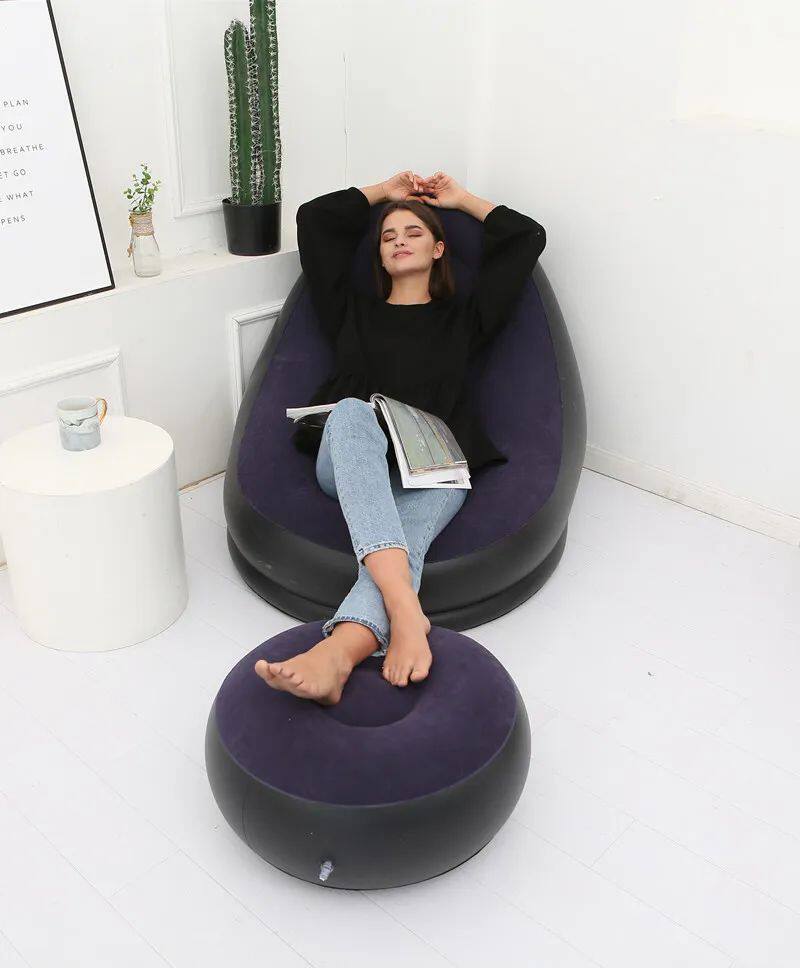 Name: flocking sofa with footstool for adults Material: environmentally friendly PVC Thickness: 0.5mm Size: 116*98*83cm