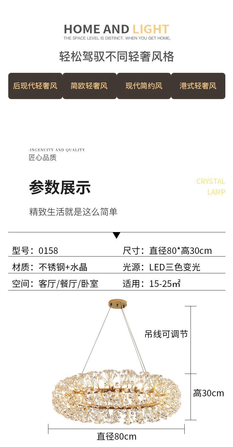 - Lampshade main material: crystal