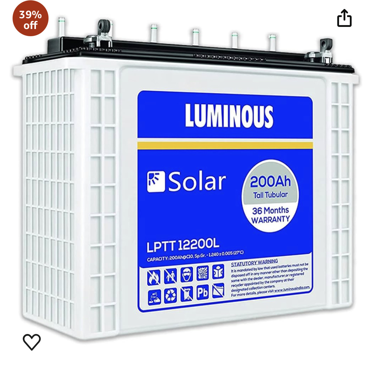 | Manufacturer | Luminous Power TECHNOLOGIES Pvt. Ltd., Tamil Nadu |