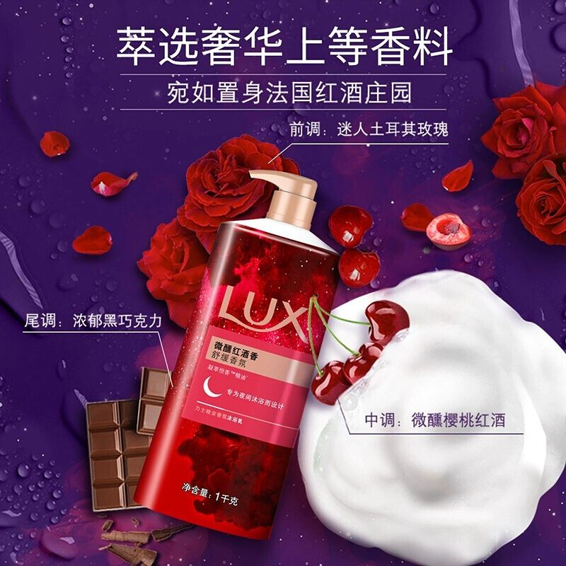 Lux Shower Gel 1000ml Tipsy Evening Fragrance Essential Oil Good Night Fragrance Shower Gel Red Wine Fragrance Long-lasting Fragrance