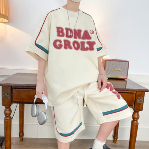 Men’s casual suit summer new youth Hong Kong style short-sleeved T-shirt junior high school students summer clothes waffle trend