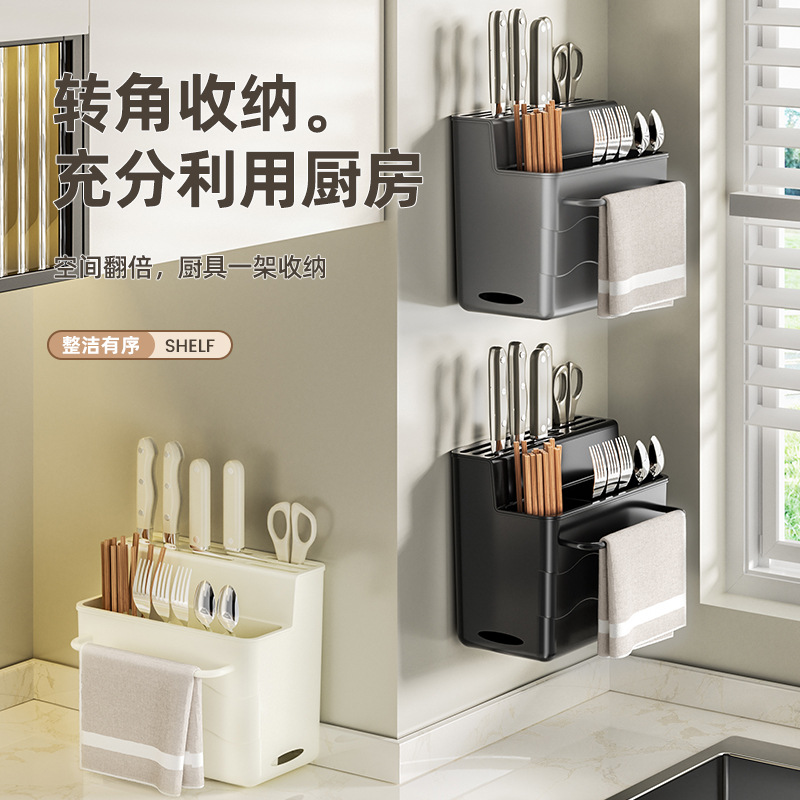 Number of layers (specifications): Knife and chopstick holder + rag rod [cream color], Knife and chopstick holder + rag rod [light luxury gray], Knife and chopstick holder + rag rod [noble black], Single seasoning rack [cream color], Single seasoning rack [light luxury gray], Single seasoning rack [noble black]