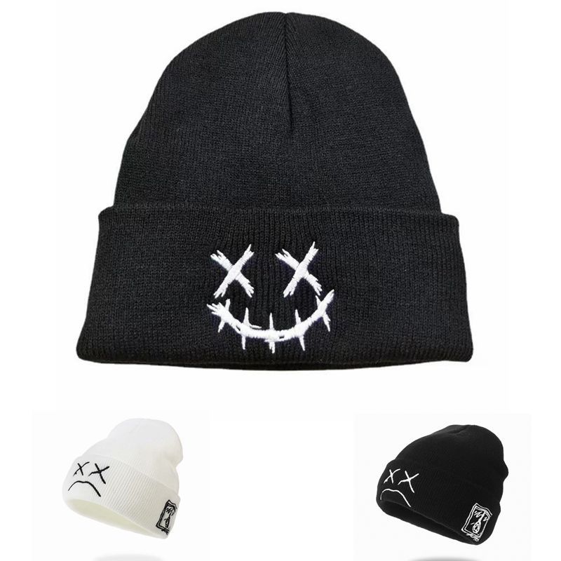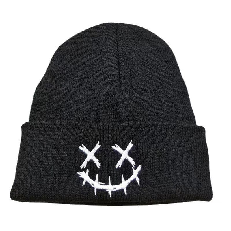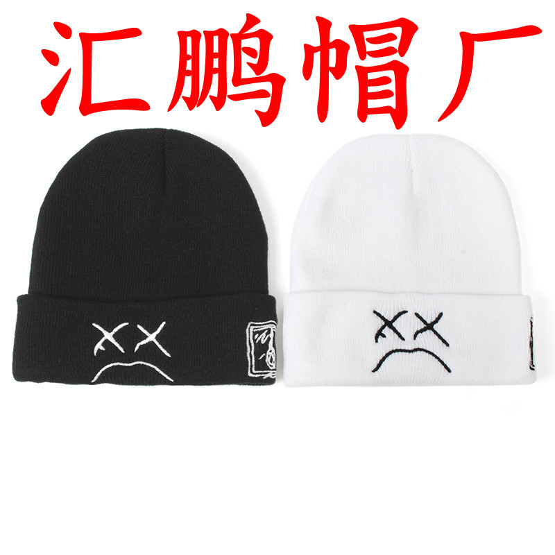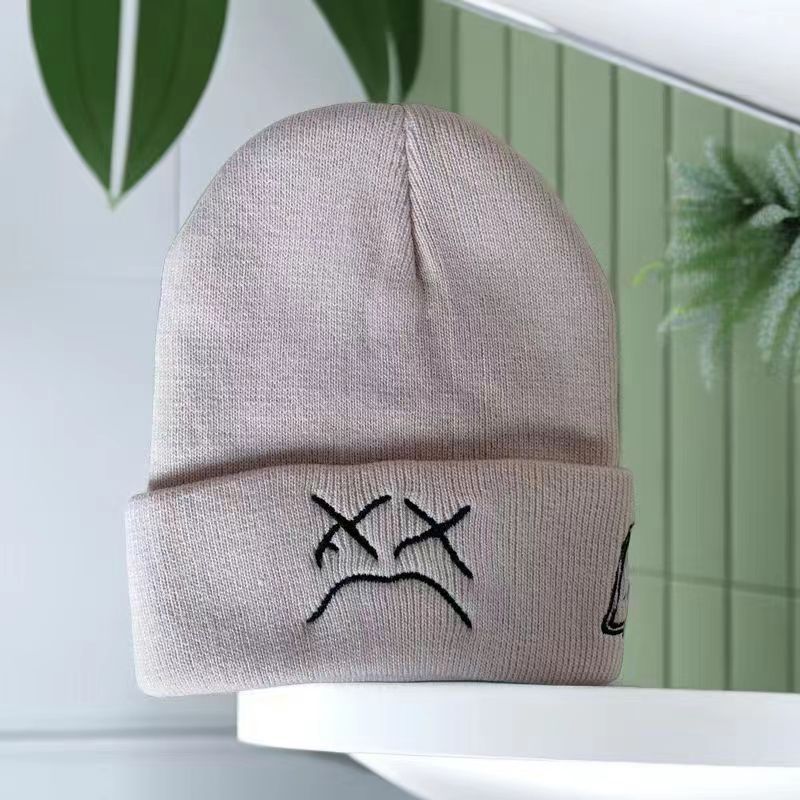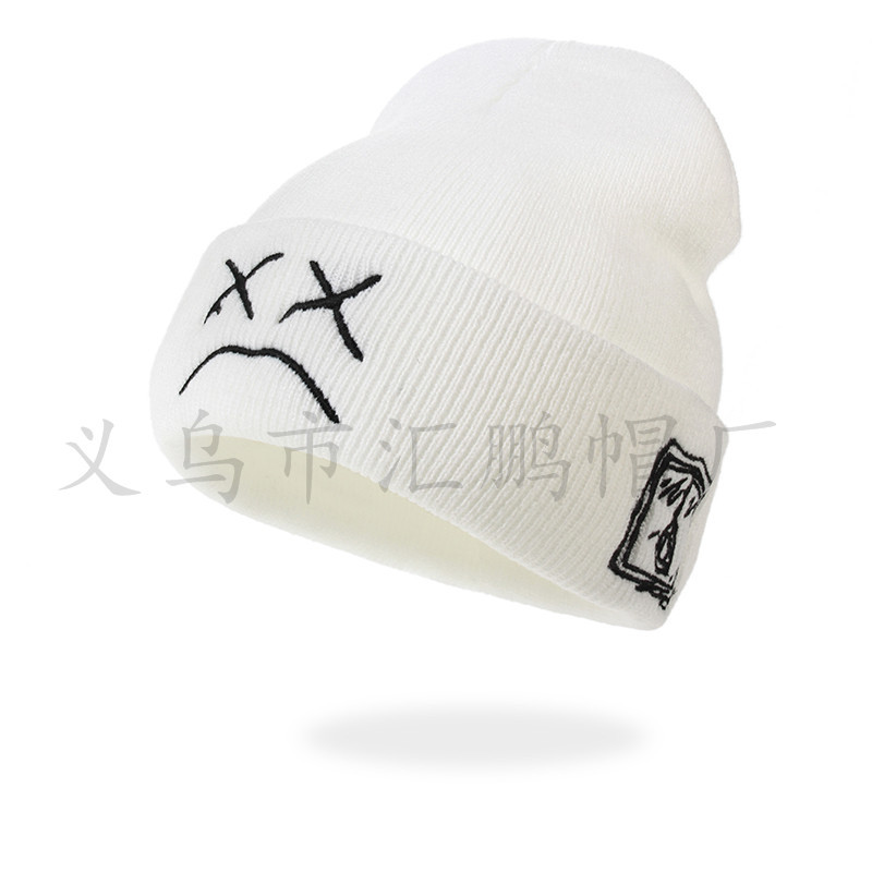 New Harajuku style embroidered expression knitted pullover hat for men and women, versatile autumn and winter outdoor warm hat