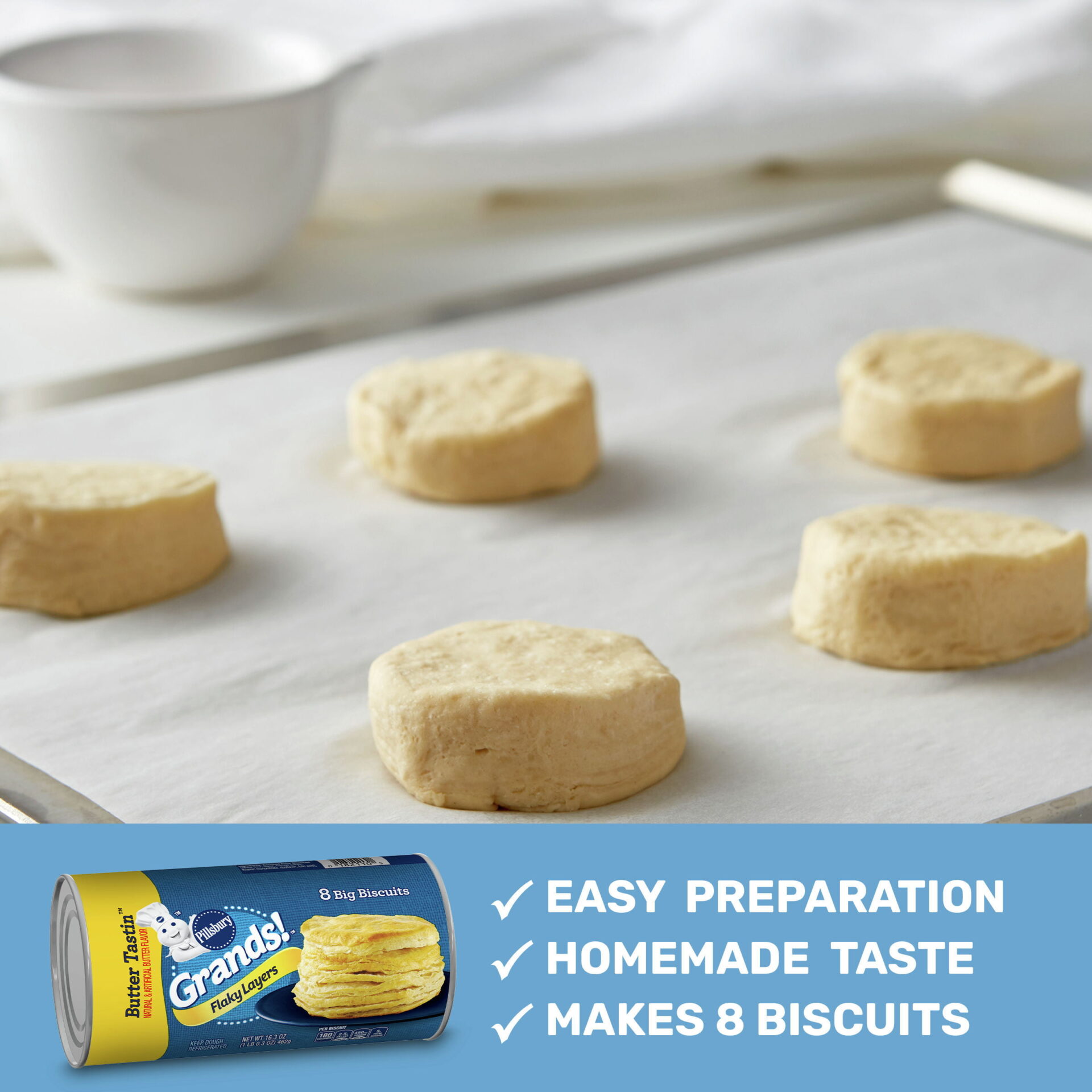 Make family meals grand with the home-baked goodness of Pillsbury Grands! Flaky Layers Biscuits. Kids and adults alike love to pull apart the flaky layers of their warm Grands! biscuits. A great alternative to scratch baking, Grands! refrigerated biscuit dough is ready-to-bake, saving you time and kitchen cleanup. In just minutes, the air will be filled with the delicious aroma of freshly baked biscuits and you’ll be ready to serve. Imagine the memories you’ll make.These biscuits will give you time back in your day to focus on what matters. Simply preheat the oven to 350° F (or 325° F for a nonstick cookie sheet), place refrigerated biscuit dough 1 to 2 inches apart on ungreased cookie sheet and bake 13-16 minutes or until golden brown. In just a few simple steps, you’ll have delicious biscuits without all the fuss!