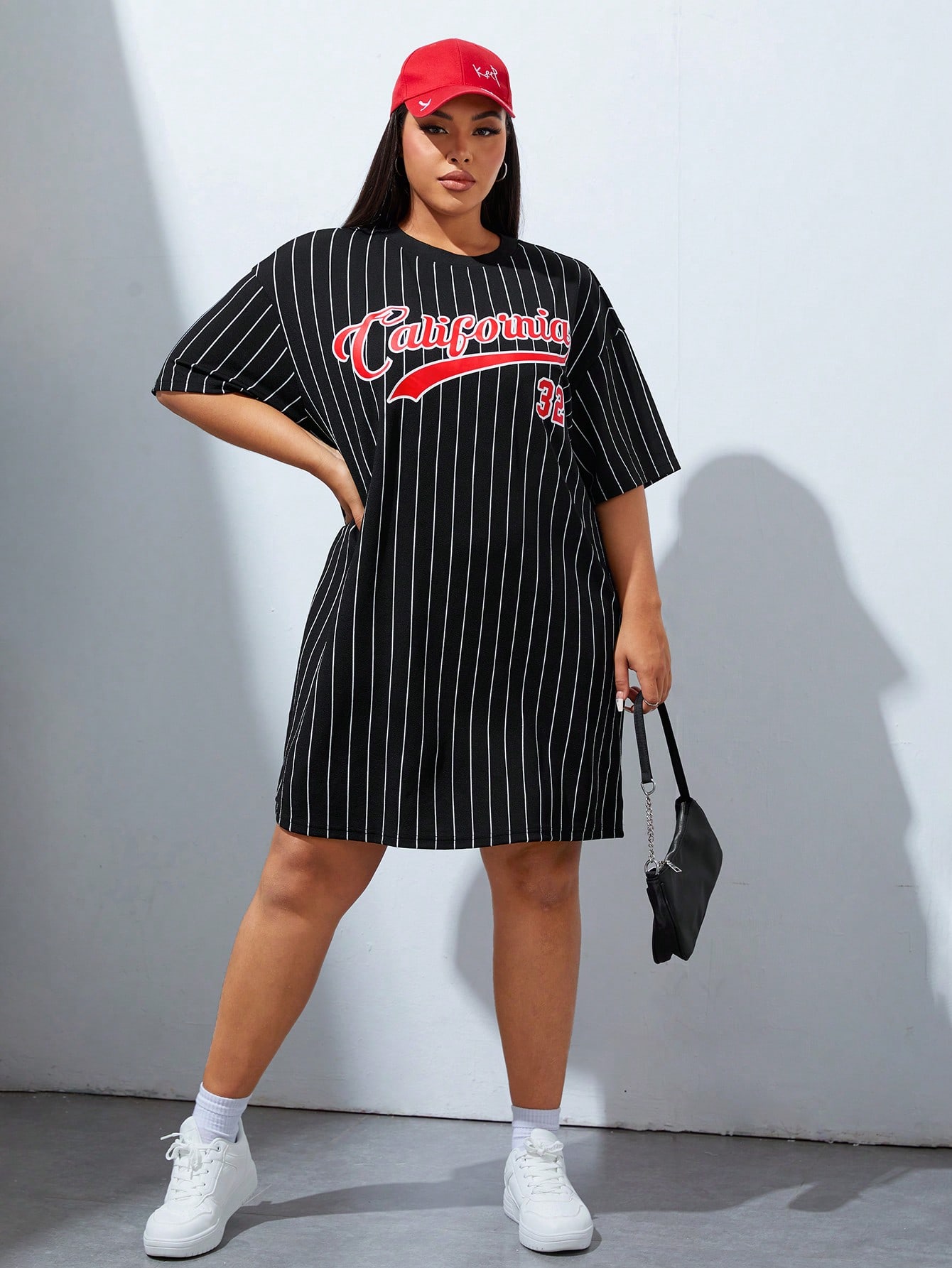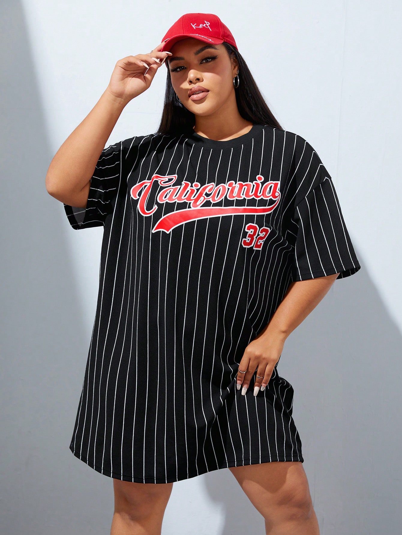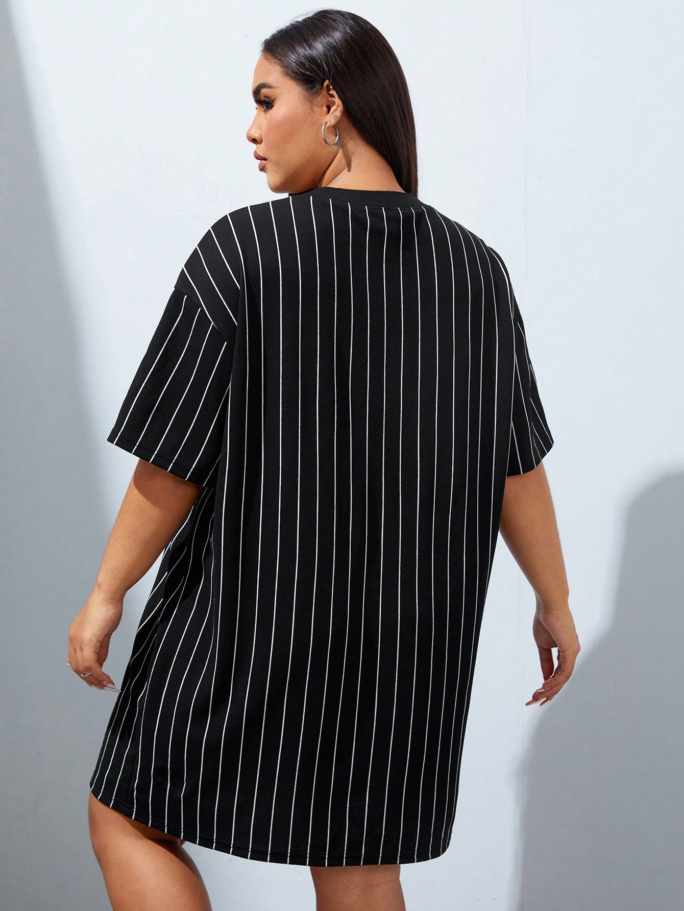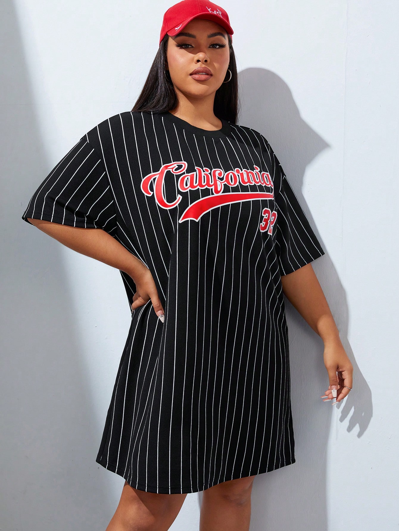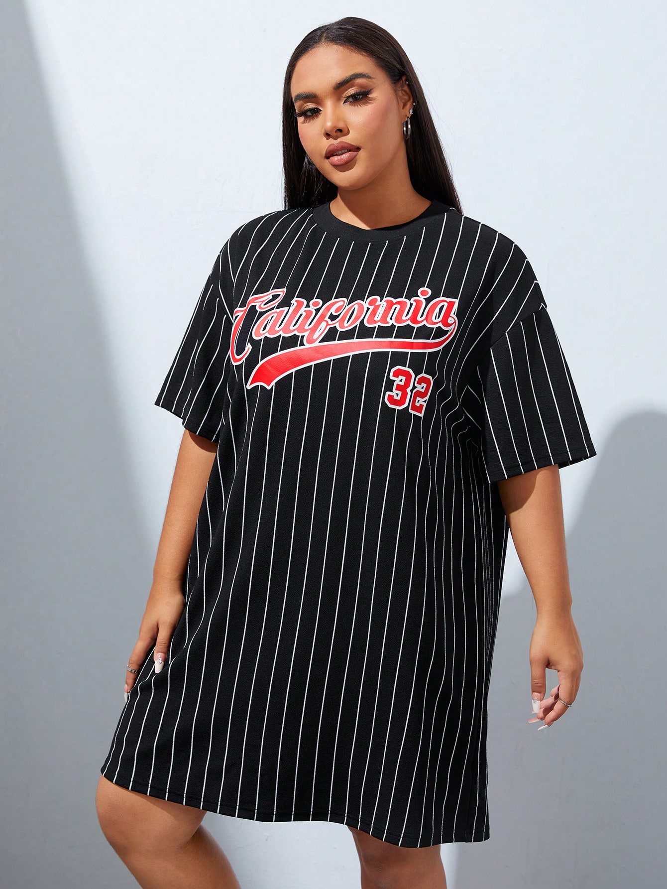 Coolane Plus Striped & Letter Graphic Drop Shoulder Tee Dress