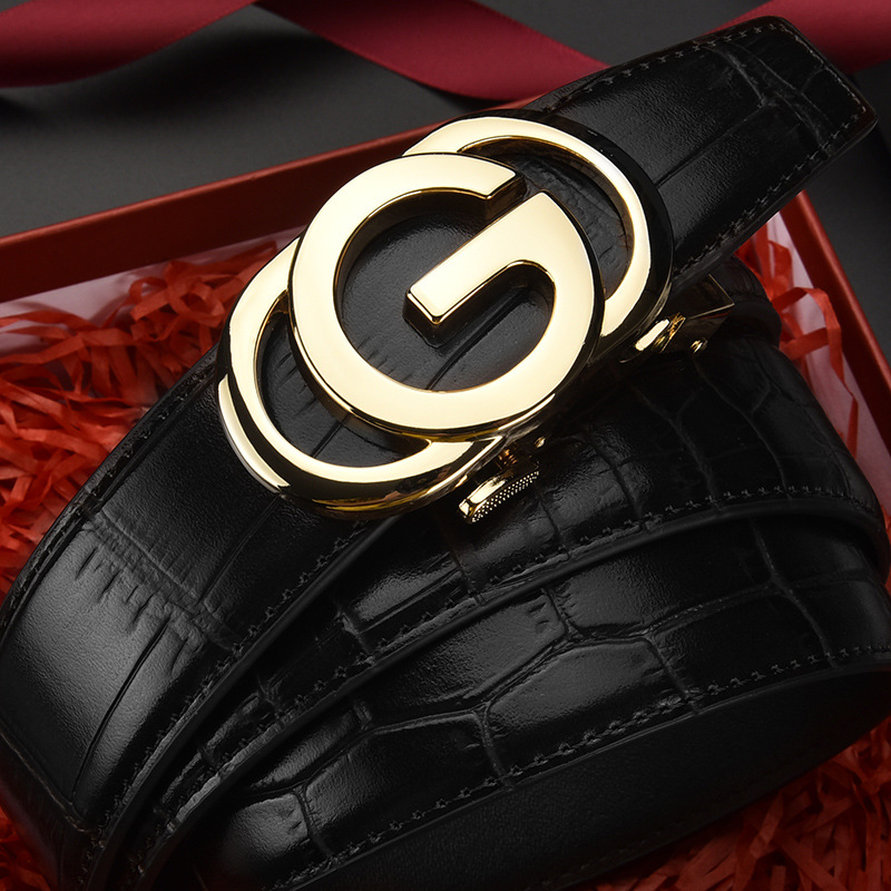 Single G automatic imitation steel buckle belt for men with crocodile belly pattern men’s belt business casual formal wear two-layer cowhide trouser belt