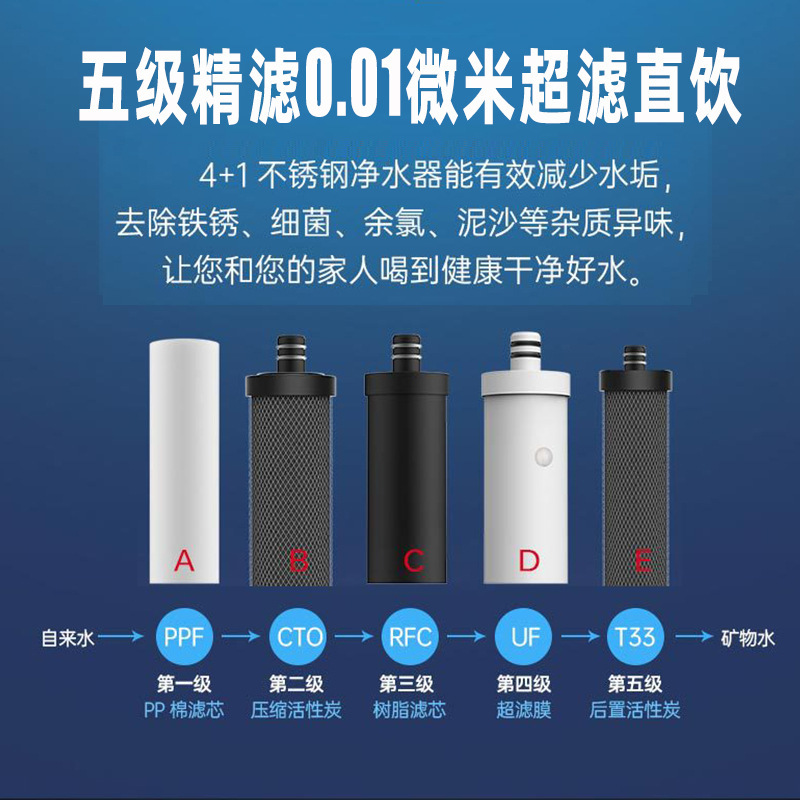 Stainless steel ultrafiltration water purifier household direct drinking machine wall-mounted five-stage water purifier kitchen tap