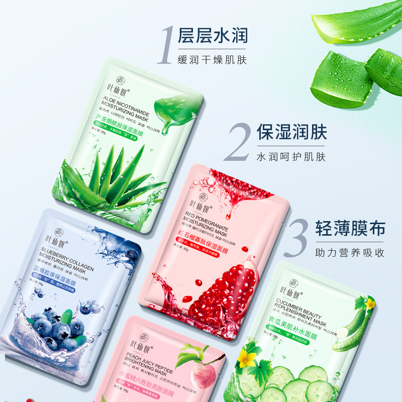 product specification: Ye Xianyan-Blueberry Collagen Moisturizing Mask 30g, Ye Xianyan-Honey Fullerene Moisturizing Mask 30g, Ye Xianyan-Aloe Niacinamide Moisturizing Mask 30g, Ye Xianyan-Red Pomegranate Oligopeptide Moisturizing Mask 30g, Ye Xianyan-Green Melon Beauty Skin Moisturizing Mask 30g, Ye Xianyan -Peach Hexapeptide Brightening Mask 30g